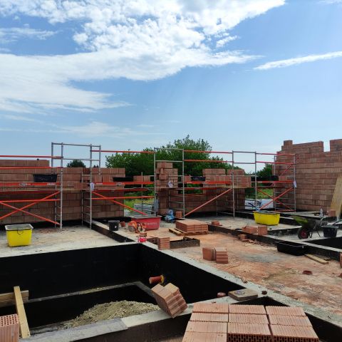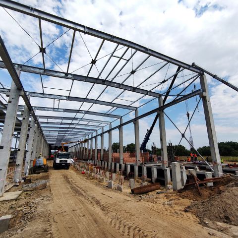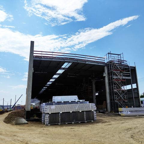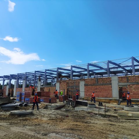 - kontynuujemy murowanie ścian oraz montaż płyt warstwowych w hali warsztatowej,