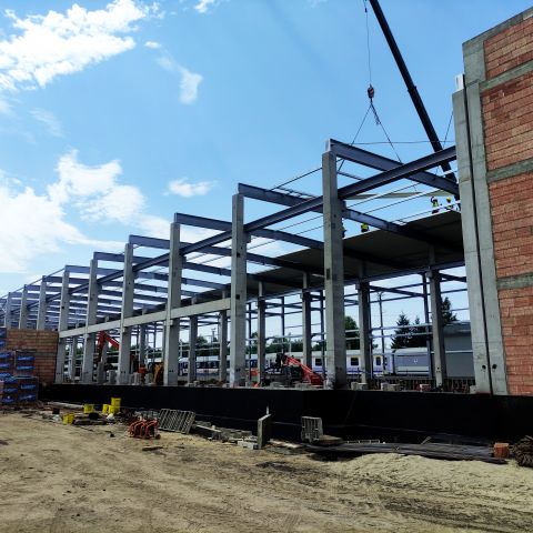 - prężnie wznosimy ściany w budynku nowej nastawni kolejowej