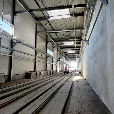W hali warsztatowej i myjni trwa realizacja posadzek i kanałów technologicznych, a już w połowie listopada ruszy montaż płytek w strefie myjni.