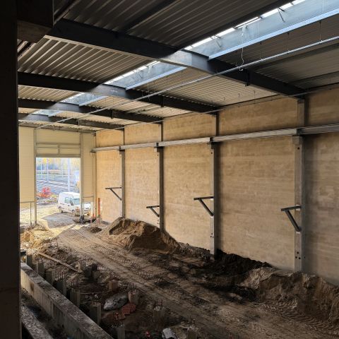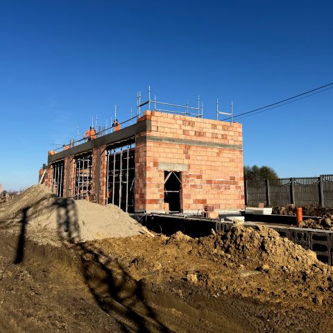 Najświeższa wiadomość z placu – rozpoczęliśmy wznoszenie magazynu! To kolejny ważny element zaplecza technicznego inwestycji, który w przyszłości zostanie wyposażony w suwnicę ułatwiającą obsługę i składowanie komponentów.