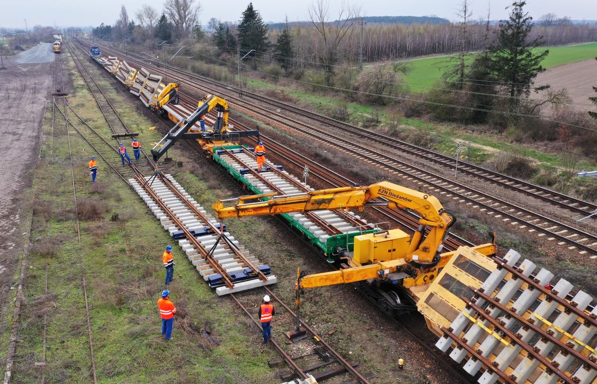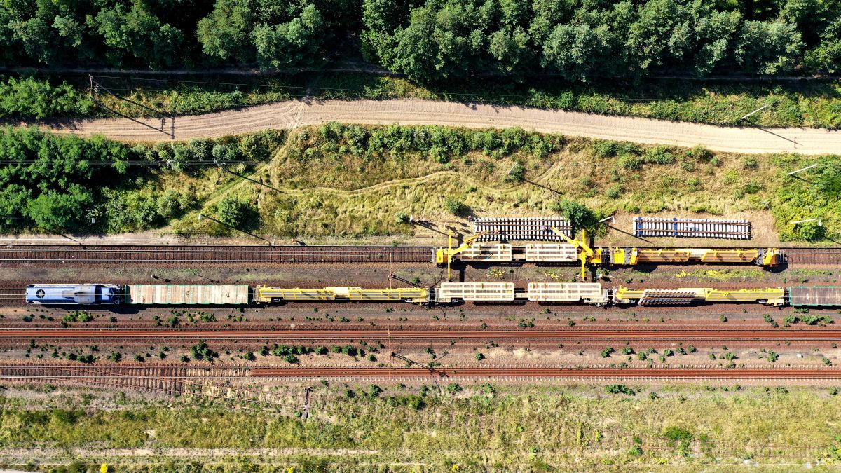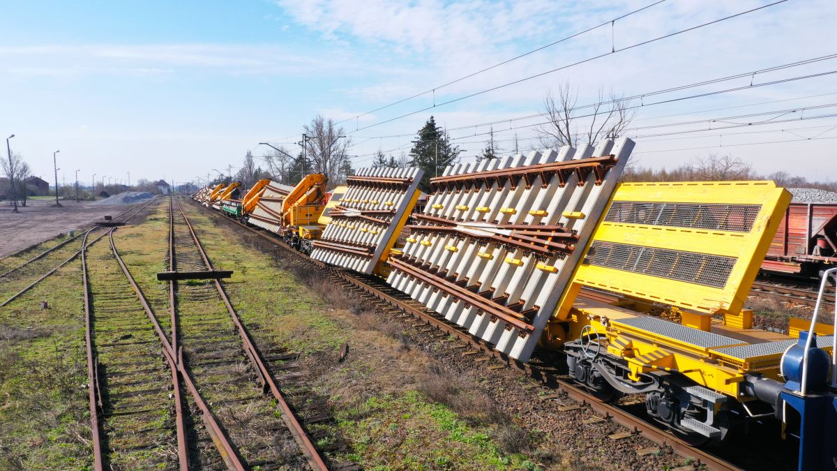 Dostawa i rozładunek rozjazdów kolejowych zmontowanych w blokach za pomocą technologii SWITCHER i systemu bramownic PWP