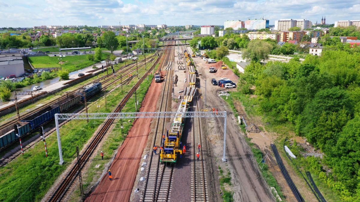 Prace prowadzone w ramach zadania "Przebudowa układu torowego stacji Radom Wschodni poprzez zabudowę nowych rozjazdów kolejowych wraz z przebudową urządzeń kolejowych”