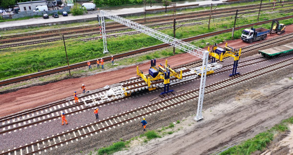 Dostawa i rozładunek rozjazdów kolejowych zmontowanych w blokach za pomocą technologii SWITCHER i systemu bramownic PWP