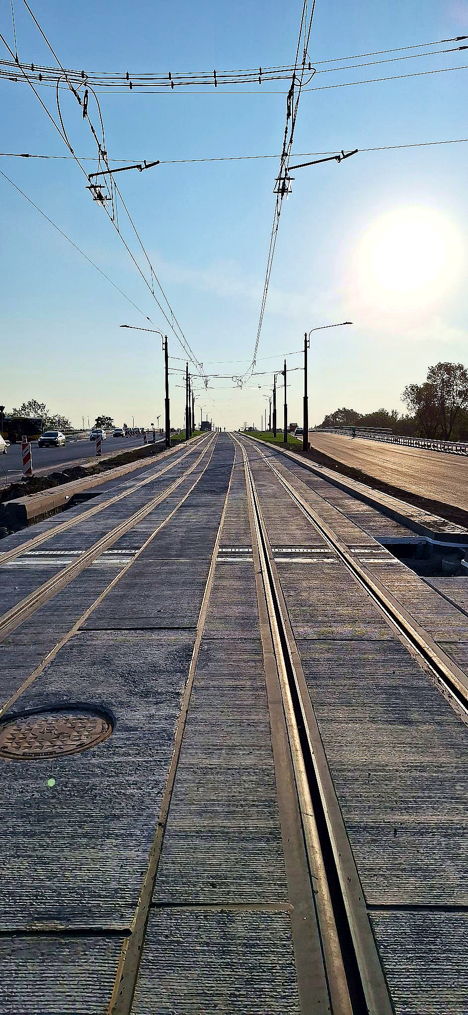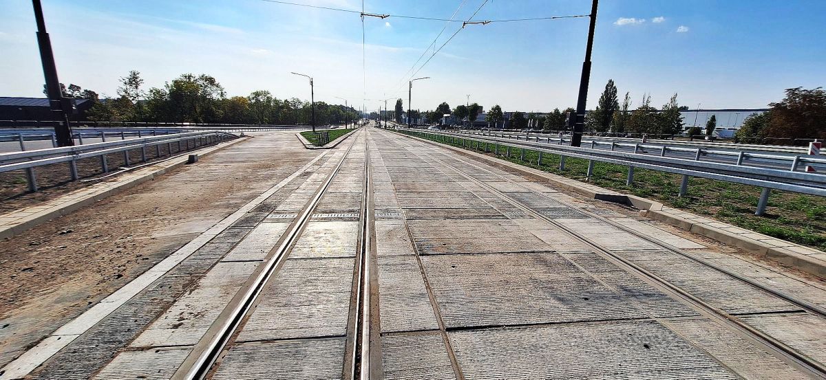 Zrealizowano prace związane z montażem torowiska w technologii prefabrykowanych płyt torowych - torowisko z szyn 60R2 na odcinku o długości 1254 mtp oraz 266 mtp torowiska węgierskiego z szyn Lk1 na wiadukcie tramwajowym.